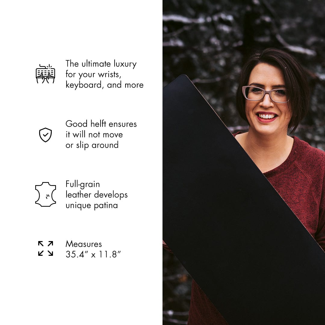 We got sick of cheaply made cloth desk pads that felt cheap and attracted cat hair like crazy.