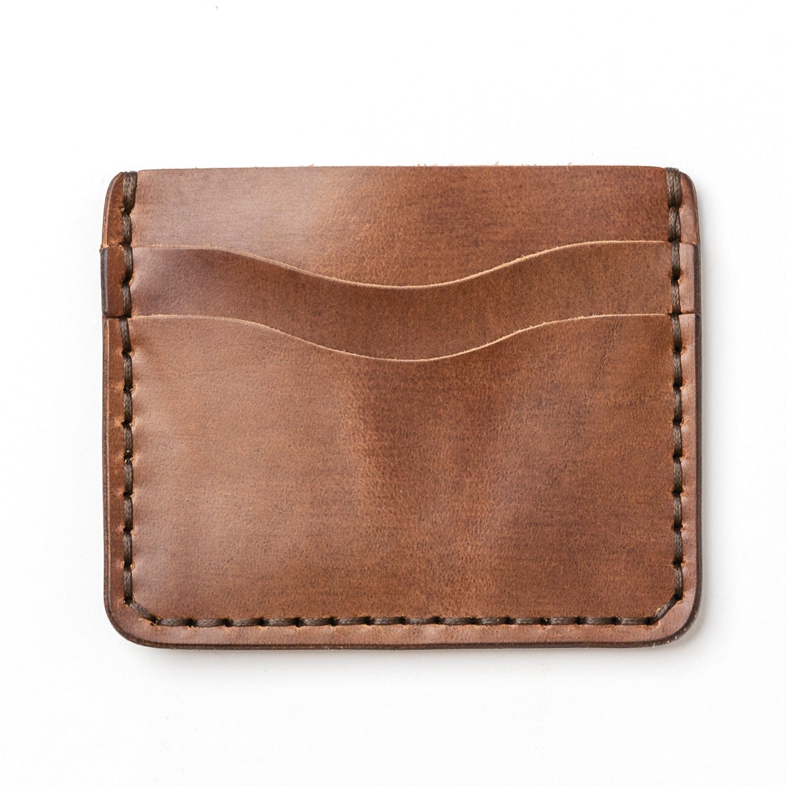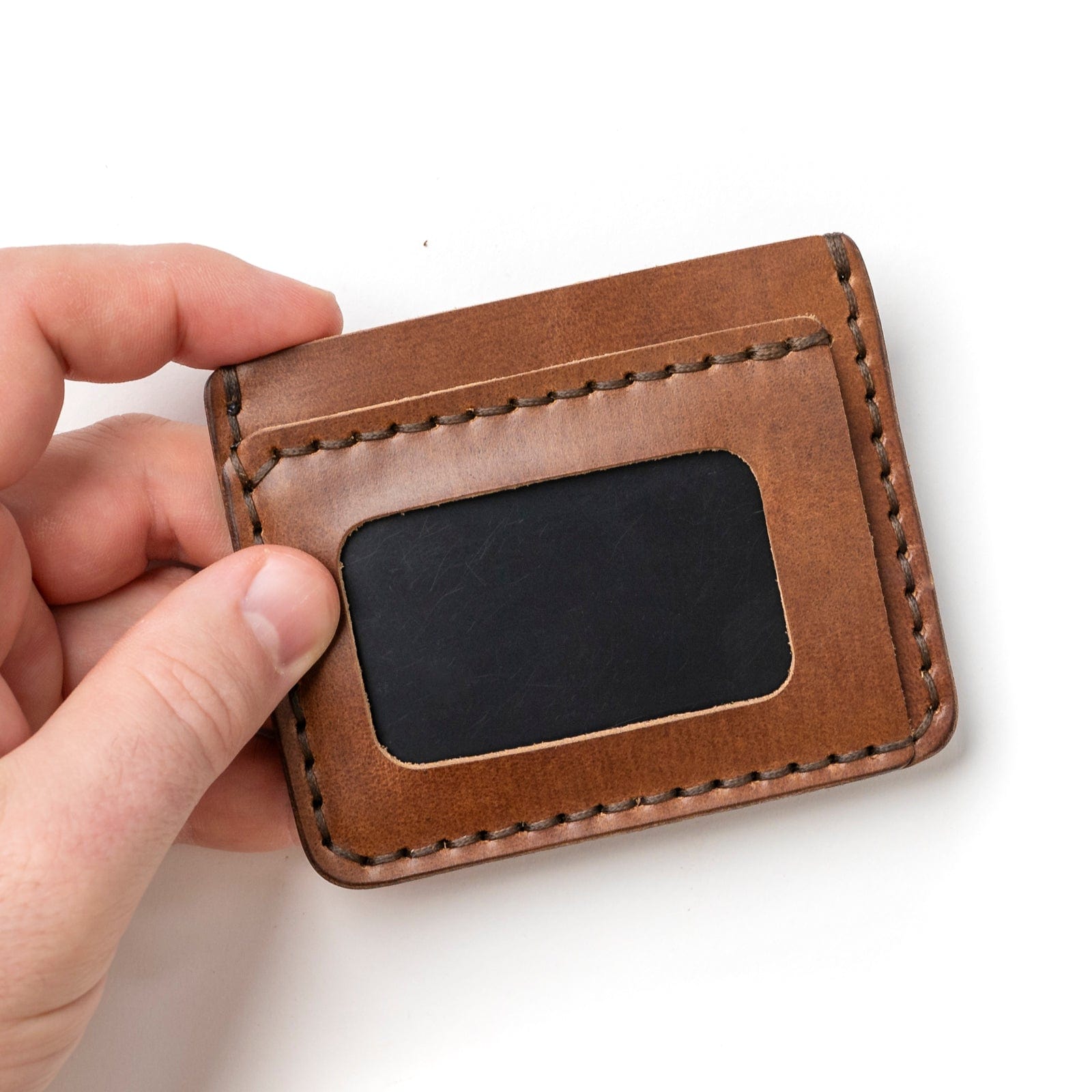Full-grain leather means your wallet will develop character and patina. We hand-sew this wallet with thick polyester thread for decades of use. We also burnish and polish the wallet edges which adds refinement to the finished piece. The wallet features a convenient billfold slot for quick access to your cash. Our minimalist design allows you to carry all your essential cards and cash without the bulk. We take a lot of pride in our work and back each wallet with a lifetime guarantee.