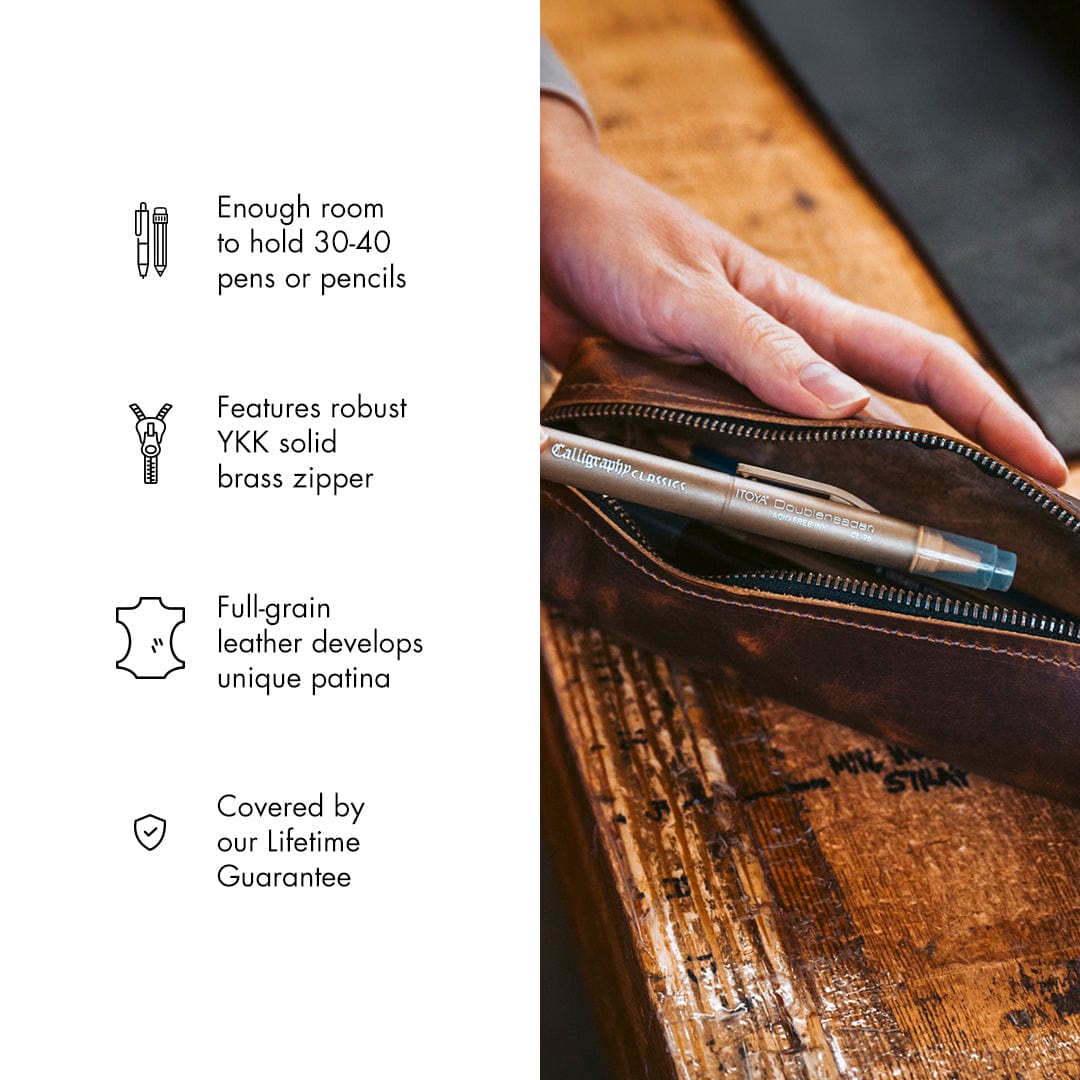 Here’s a leather pencil case for those who prefer simplicity and function over flashy nonsense. This full-grain leather case will hold all your pens, pencils, and anything else you need to get the job done. Whether you’re sketching blueprints, writing a grocery list, or just need a good place to store your tools, this case will last you a lifetime—literally. No frills, just solid, reliable craftsmanship.