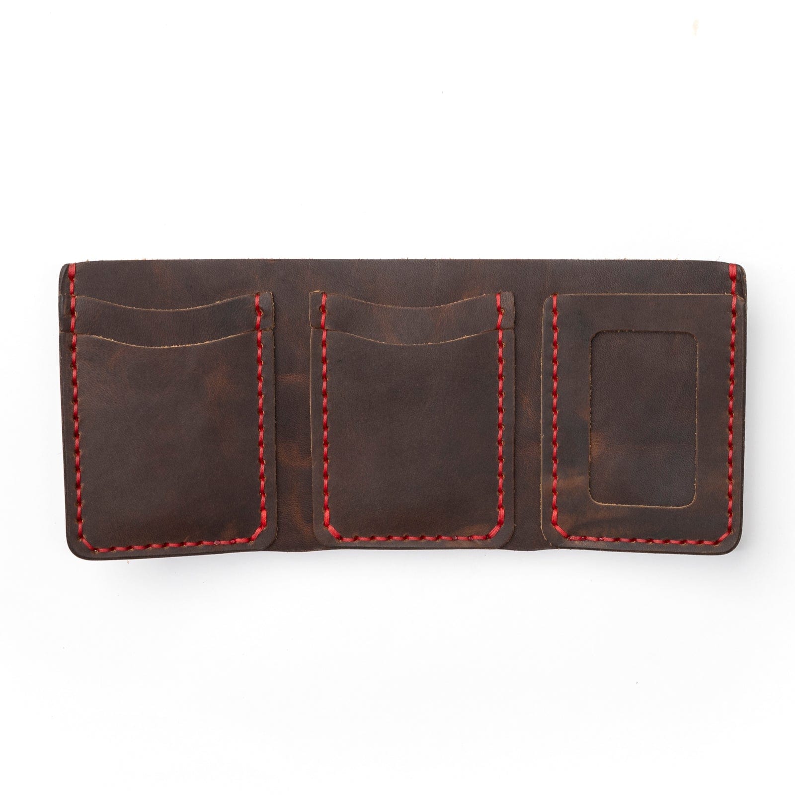 This Trifold is unlike any wallet you've ever seen. Perfect for long trips where you need access to deep pockets and a flip-out ID window. This wallet will look better the more you use it and is built for adventure. As Patina forms on the leather, your wallet will become a record of your time together.